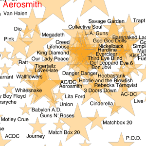 Latest releases: Implementation of user map and artist map in the new release of last.fm (03-04-2004). User map and artist map display the social network and the connection to the artist as part of the new pop-up player. Development: Music Map - Development of innovative methods to create a map for the entire world of music. Different approaches are involved to analyse and transfer the existing data of artist similarity and neighbourhood calculation for mapping. Semio Music - Analysis of the semantic connections of song titles. Match artists and people by a selection and combination of specific words? History: First version of the neighbourhood and artist network for last.fm |